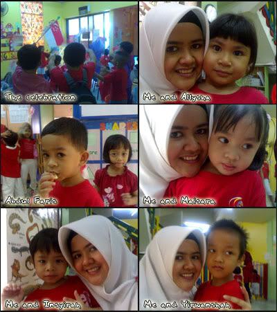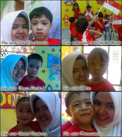 Happy 41st birthday Singapore!!!!Yesterday, we had our very own National Day Celebration in school.. All the children were dressed up in red and white (and so were the teachers).. There was a potluck and most of the children brought food from home.. there were diff kinds of noodles, there were chicken nuggets, fish fillets, jelly, hot dogs and many tidbits!!
